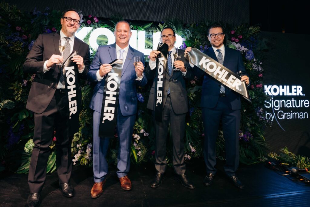 Fotografía: Juan Pablo Malo, Vicepresidente de Negocios del Grupo Industrial Graiman; Jake Lawson, Vice President of Sales & Business Units, Kitchen & Bath de KOHLER para Américas; Alfredo Peña, Presidente Ejecutivo de Grupo Industrial Graiman; Roberto Martínez, Managing Director Kitchen & Bath de KOHLER para Latinoamérica